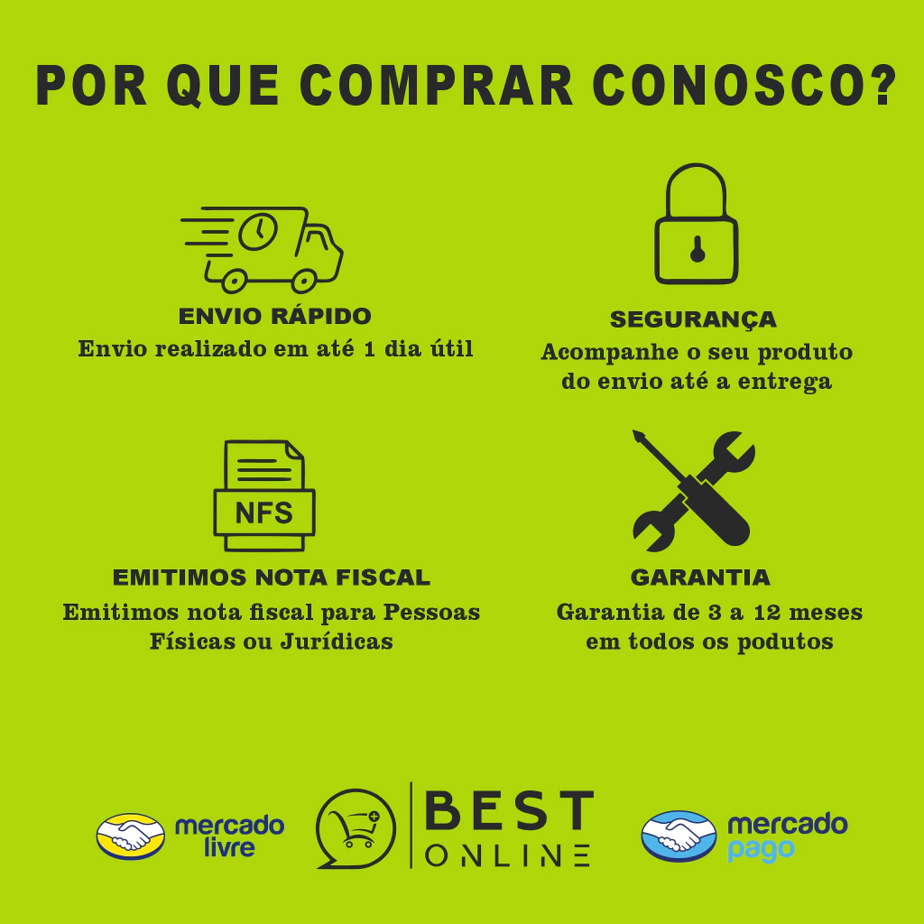 Verifique a compatibilidade do produto com seus equipamentos para que não existam problemas na hora do uso! Verifique isso com seu instalador ou profissional contratado antes da compra.